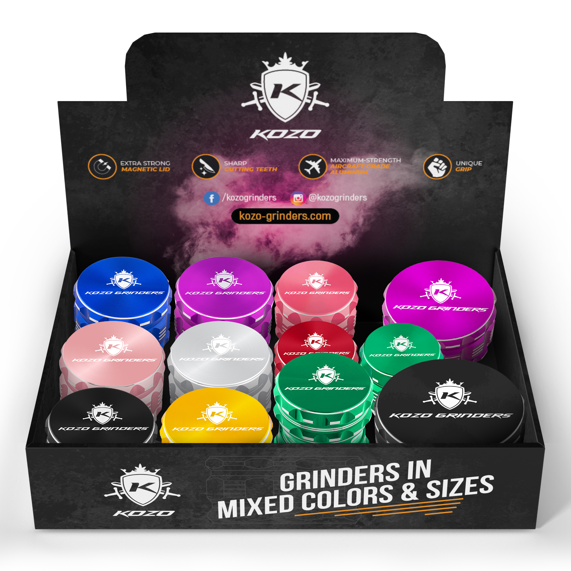 Crafted from aircraft-grade aluminum, Kozo grinders offer a durable, premium build that holds up to daily use. Sharp teeth provide a fast, consistent grind, and the strong magnetic lid keeps the top secure to prevent spills and keep the experience clean